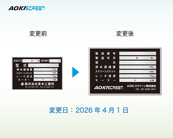 また、2026年5月13日以降は、新社名名義「アオキスクリーン(カ」へ変更となる予定でございます。